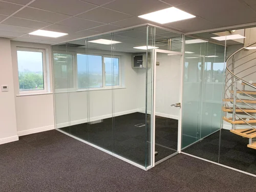 - دیوارهای داخلی: این شیشه معمولاً برای دیوارهای اداری استفاده میشود که جذابیت زیبایی و استحکام متوسطی را نیاز دارند. شفافیت آن اجازه میدهد فضاهای باز و هوایی ایجاد شود و در عین حال دوام کافی برای استفاده روزمره را فراهم میکند.